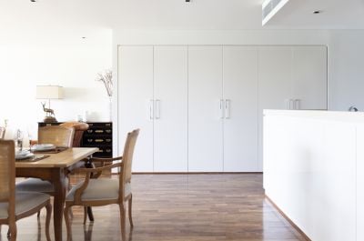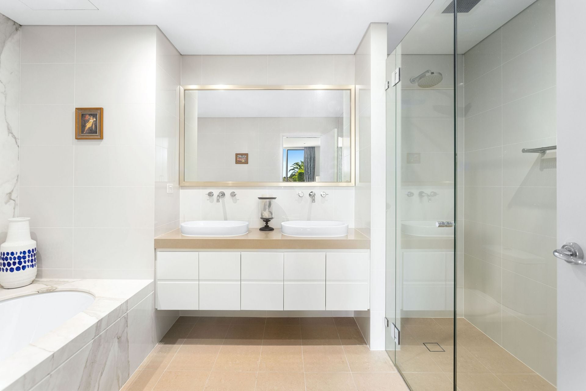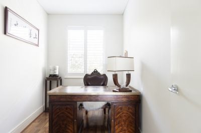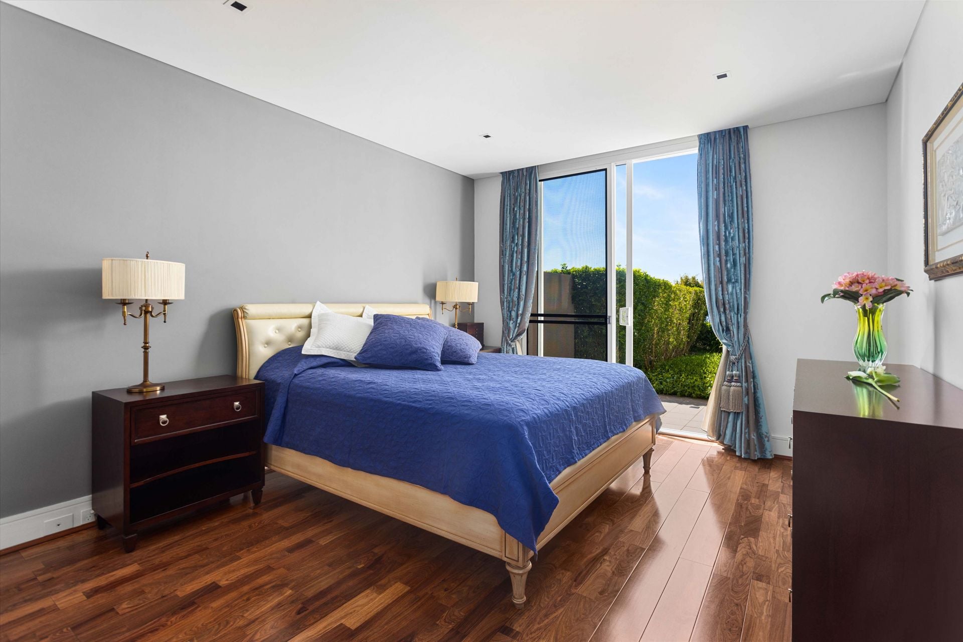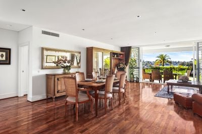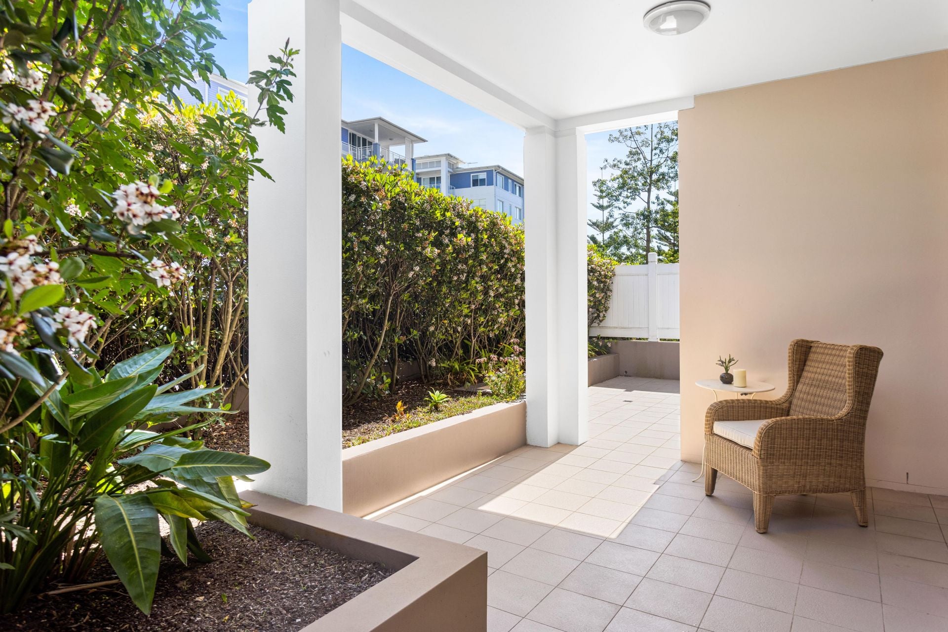 The main bedroom is a sanctuary of luxury, with its east-facing private view, an ensuite, and a spacious walk-in wardrobe. The living and dining area seamlessly connects to a modern kitchen equipped with quality appliances and a convenient pull-out pantry. Enjoy a distinctive culinary experience while taking in the enchanting water view from the private garden. The front courtyard is perfect for entertaining guests and hosting gatherings, and both double bedrooms have convenient access to a separate courtyard. Thoughtfully integrated built-in storage cabinets ensure a tidy and organized living space.