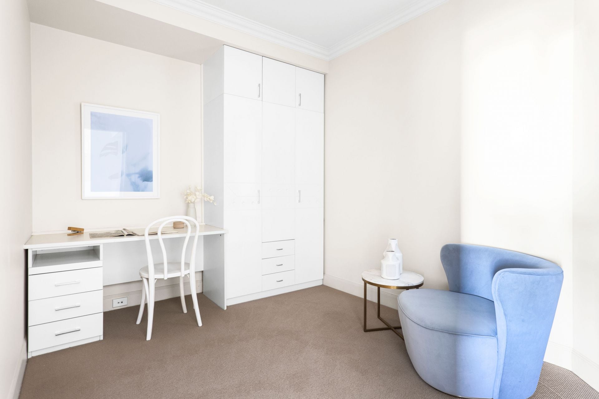 Separate media/study area and ample built-in storage throughout