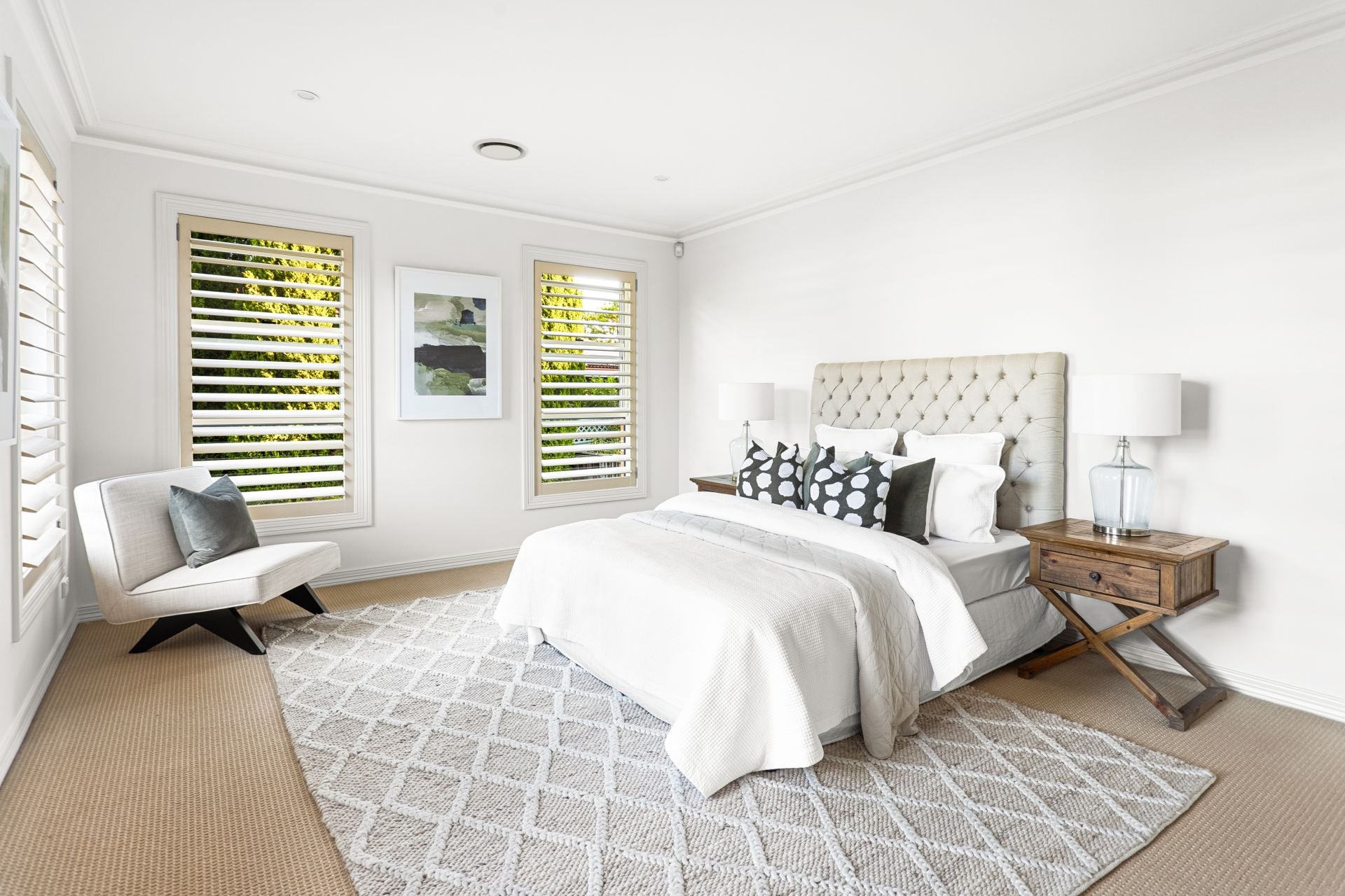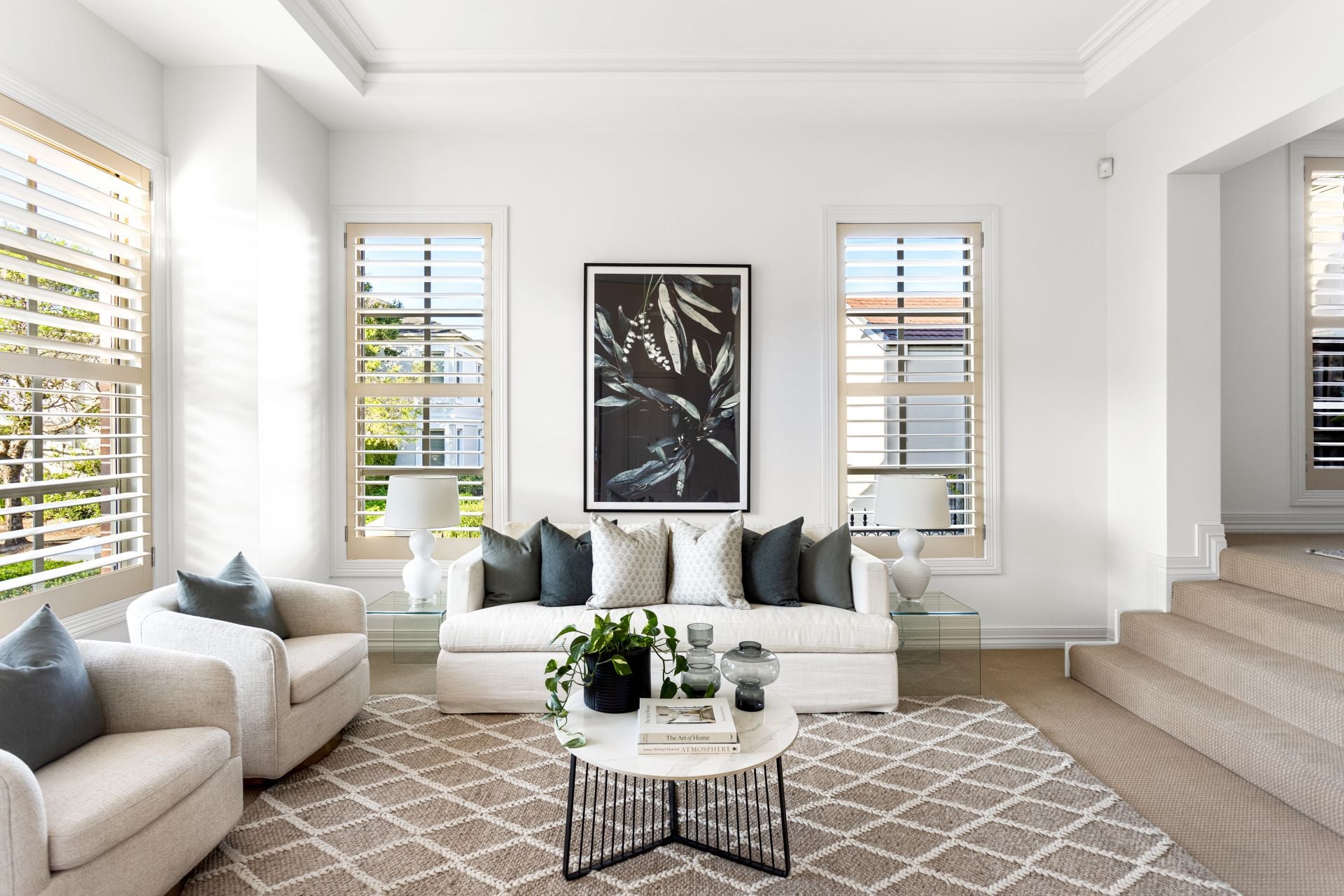 • Plantation shutters and oversized windows allowing natural light to flow throughout