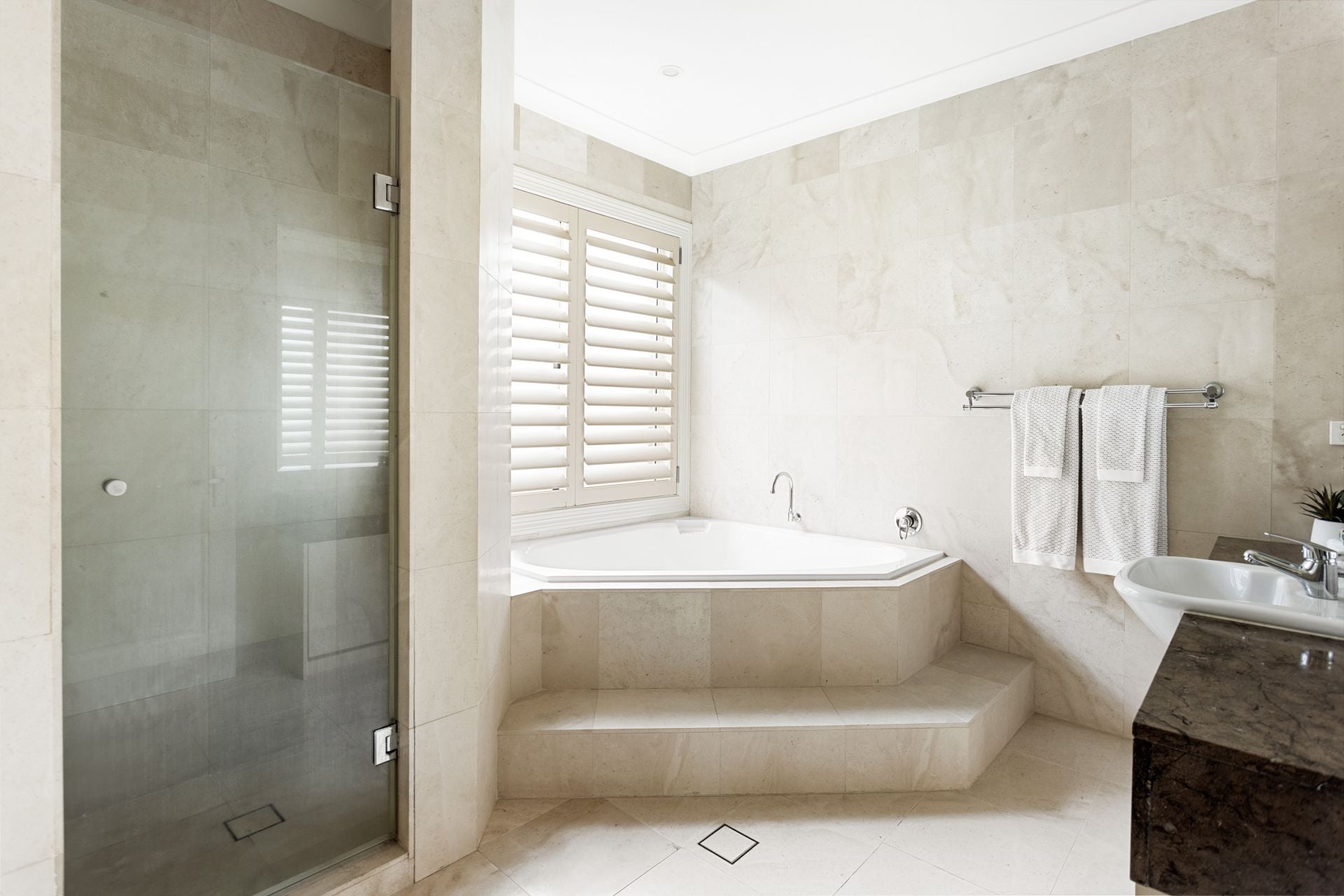 • Limestone tiles in main downstairs living areas for a seamless and elegant feel