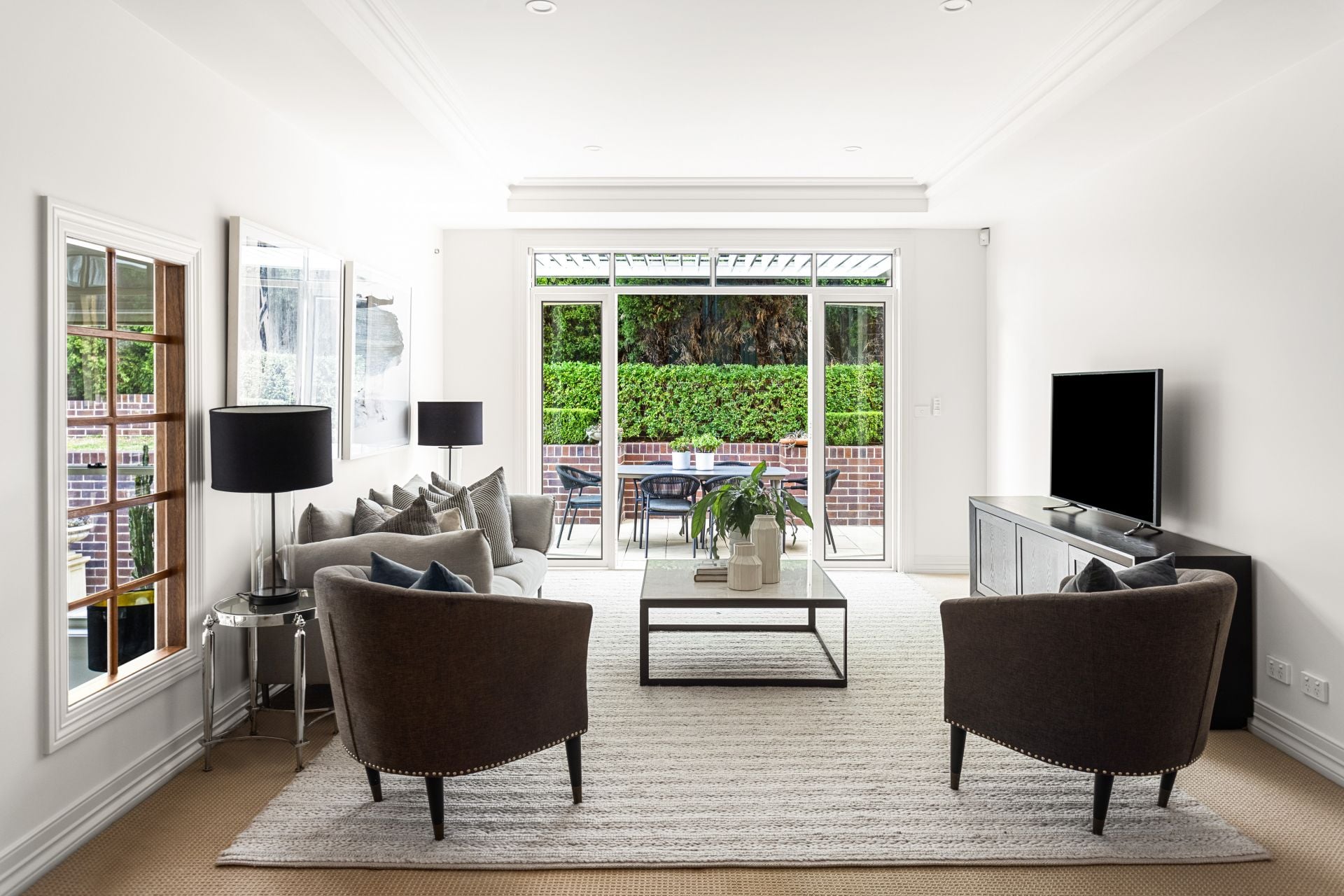 • Private courtyard with easy-care gardens, irrigation system, and built-in BBQ in covered alfresco dining area