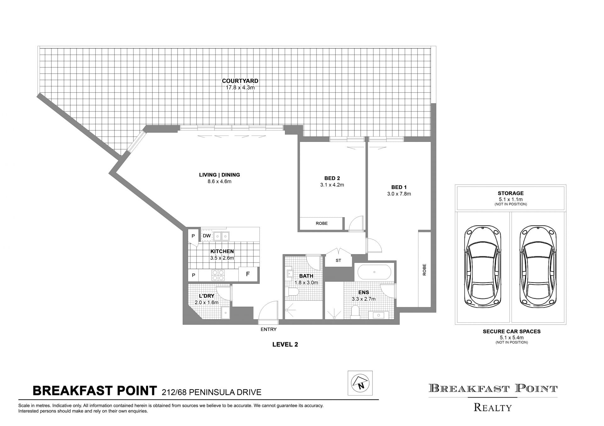 This modern and spacious two-bedroom, two-bathroom apartment in The Hamptons building offers a seamless blend of luxury and convenience. Featuring floorboards throughout and a generous open-plan living and dining area, the home flows effortlessly to an oversized entertainers' courtyard, providing abundant natural light. The large kitchen with a peninsula bench creates the perfect space for cooking and entertaining, while both bedrooms open directly to the outdoor area. Enjoy easy access to local amenities, transport links, and the exclusive Breakfast Point Country Club.