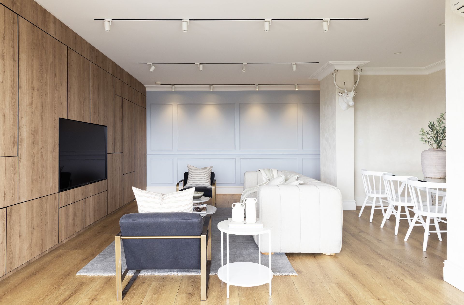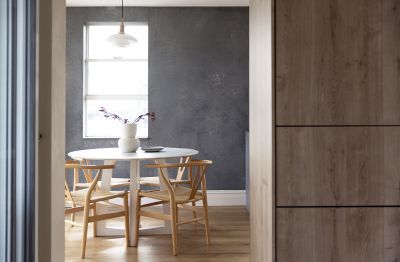 • Stylish floorboards in the living and dining zones