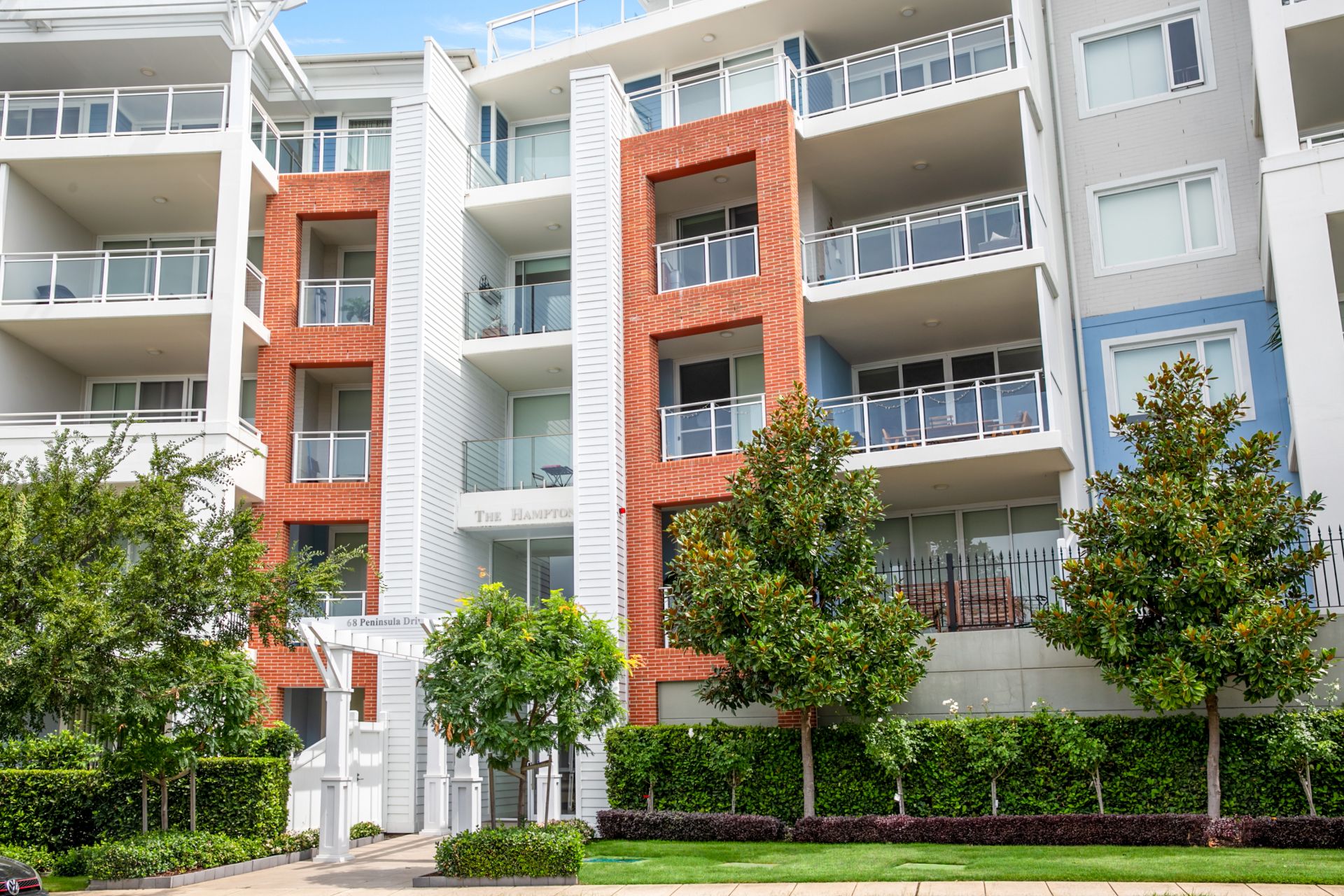 Experience the perfect fusion of style, comfort and convenience in this beautifully appointed split-level apartment within the prestigious Hamptons Building at Breakfast Point. Offering a highly functional layout, this one-bedroom residence exudes sophistication with meticulous attention to detail and premium finishes throughout.