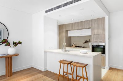 Positioned in the prestigious Endeavour building, this ground floor apartment combines modern finishes with a relaxed, low-maintenance lifestyle. Featuring a generous study and private gated courtyard, it offers the perfect blend of comfort and convenience. Open plan living flows seamlessly to the outdoor space, while the Miele-appointed kitchen with stone benchtops and quality finishes ensures both style and practicality. Just meters from the waterfront promenade and within walking distance to Silkstone Park and the Village Centre, this residence also enjoys access to resort-style precinct facilities.