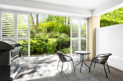 Perfectly positioned opposite the Village Green and just footsteps from the Breakfast Point Country Club, this stylish three-bedroom apartment in the sought-after Garland Mews building offers relaxed living in a premium lifestyle location. The generous open-plan living and dining area flows seamlessly to two large courtyard gardens at the front and rear, ideal for entertaining or quiet retreat. Designed for comfort and functionality, the apartment features a sleek modern kitchen with breakfast area, and a thoughtfully zoned layout with the main bedroom offering an ensuite and direct garden access. With ducted air conditioning, lift access, and two secure car spaces, this home blends convenience, space, and resort-style living - all just a short stroll to shops, transport and the waterfront.